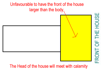 Under the good or bad  layout of buildings derived from the Yang Zhai Shi Shu, the head of  the family will meet with calamity if the " head " or the front of the house is larger than it's body.